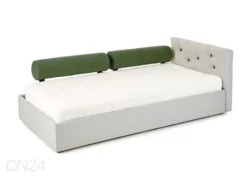 2) kun tilaat sängyn kaksivärisenä – valitse sängyn verhoilukangas lisävalinnoista ja kirjoita tilauksen lisätietoihin rullatyynyjen viimeistely (sängynpäädyn napit ovat samanväriset kuin sängyn verhoilu, tilattavissa myös rullatyynyjen verhoilukankaalla kirjoita valinta tilauksen lisätietoihin•sänky on valmistettu käsityönä laadukkaita ja lapsiystävällisiä materiaaleja käyttämällä•sängynrunko on laadukasta koivuvaneria, pehmusteena vaahtomuovia•sängyn täyspohja on laadukasta koivuvaneria•patja ei sisälly toimitukseen, tilaa sopiva patja 70×155 cm mitoissa•toimitukseen sisältyy kaksi rullatyynyä, kiinnitetään kahdella ruuvilla (mukana)•vesipestävä kangas Caleido (63% puuvilla, 27% pellava, ÖKO-TEX100 serifikaatti, kulumiskestävyys 32 500 Martindale)•jalat ovat muovia, korkeus 2 cm•sängyn kantavuus on enintään 100 kg•sängynrunko ja -pohja on kootaan tehtaalla valmiiksi, pääty on kätevästi kiinnitettävissä neljällä ruuvilla (mukana)