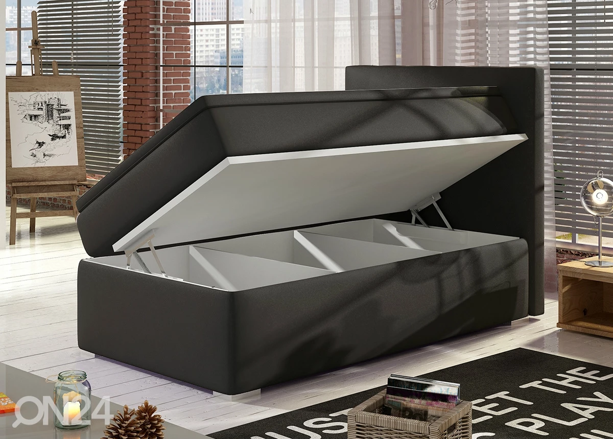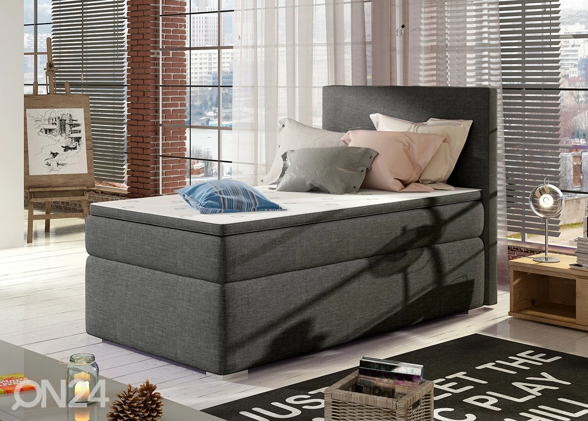 Oikealta puolelta avautuva sänky koostuu vuodevaatelaatikosta, joustinpatjasta, petauspatjasta ja sängynpäädystä • runko on valmistettu puusta ja kalustelevystä • verhoiltu kankaalla • viimeistely: harmaaOikealta puolelta avautuva sänky koostuu vuodevaatelaatikosta, joustinpatjasta, petauspatjasta ja sängynpäädystä•runko on valmistettu puusta ja kalustelevystä•verhoiltu kankaalla•viimeistely: harmaa•patja keskijäykkyydellä H3 (kehon paino 60-100 kg)•patjassa on bonell-jousitus, 107 jousta/m2, jousen halkaisija on 2,4 mm (jäykempi)•sijauspatjassa on vaahtomuovia•sijauspatjan päällinen on vetoketjulla irrotettava ja pestävissä 40 asteessa•päädyn takaosa on verhoiltu mustalla kankaalla•sängynjalat ovat muovia•kaksi viimeistä tuotekuvaa ovat havainnollistavia