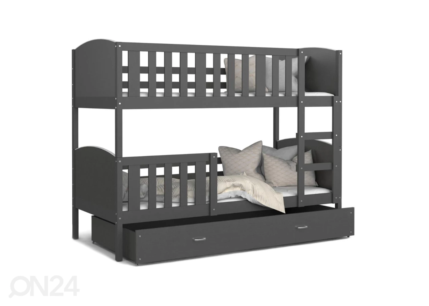 Kerrossänky on valmistettu melamiinipinnoitetusta kalustelevystä • toimitukseen sisältyy kerrossänky, sängynpohjat, vuodevaatelaatikko ja 2 vaahtomuovipatjaa 80x160x7 cm mitoilla • Laatikossa on pienet pyörät • Vetimet ovat muoviaKerrossänky on valmistettu melamiinipinnoitetusta kalustelevystä•toimitukseen sisältyy kerrossänky, sängynpohjat, vuodevaatelaatikko ja 2 vaahtomuovipatjaa 80x160x7 cm mitoilla•Laatikossa on pienet pyörät•Vetimet ovat muovia•Voidaan koota peilikuvaksi ja käyttää myös kahtena erillisenä sänkynä•Molempien sänkyjen enimmäiskantavuus 60 kg