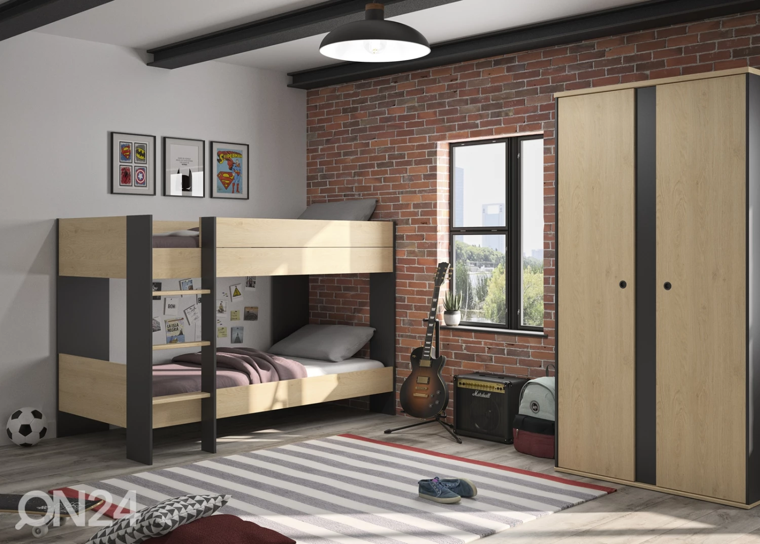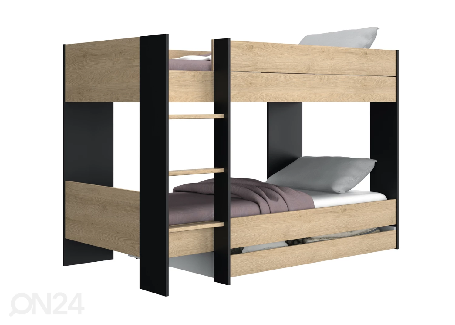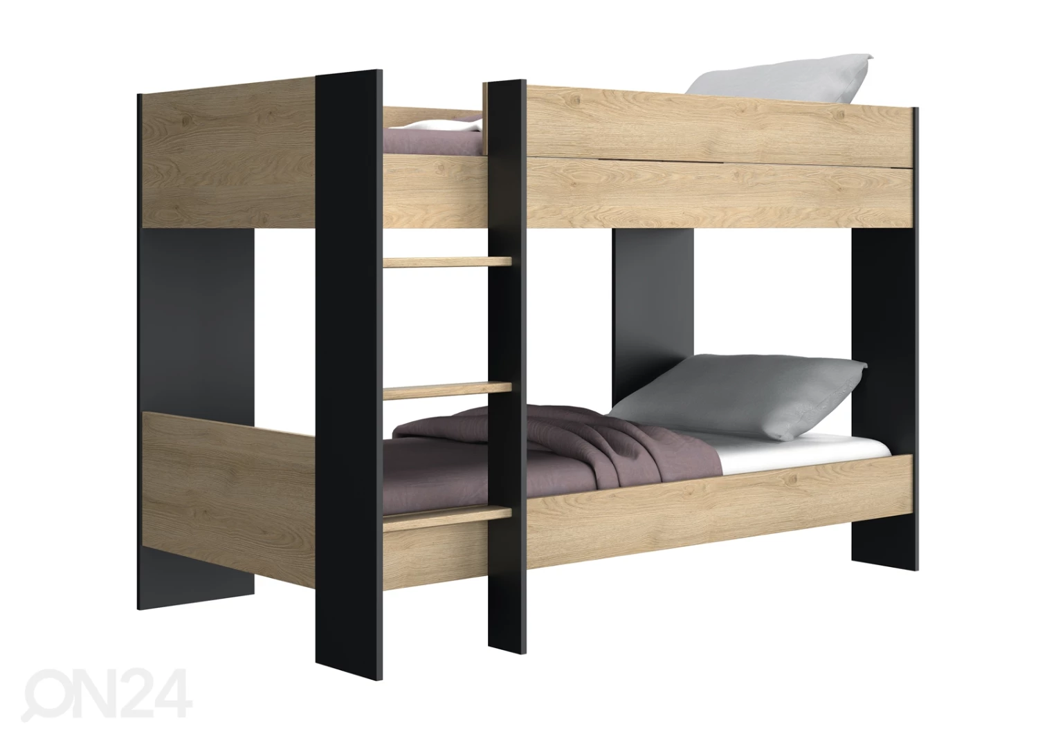 kerrossänky on valmistettu laadukkaasta Euroopan terveysvaatimuksia vastaavasta kalustelevystä • valmistettu laminoidusta kalustelevystä, osa reunoista on pyöristetty • viimeistely: luonnollinen kastanja/musta • Sängynpohjat sisältyvät toimitukseenkerrossänky on valmistettu laadukkaasta Euroopan terveysvaatimuksia vastaavasta kalustelevystä•valmistettu laminoidusta kalustelevystä, osa reunoista on pyöristetty•viimeistely: luonnollinen kastanja/musta•Sängynpohjat sisältyvät toimitukseen•patjat eivät sisälly toimitukseen, tilaa sopivat patjat mitoissa 90×200 cm•valmistettu Ranskassa