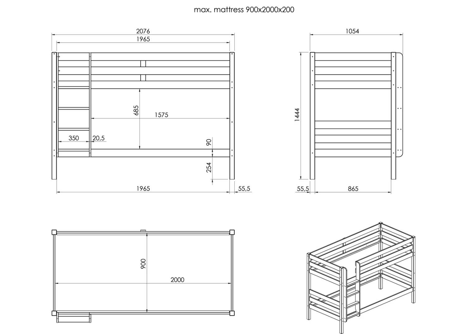 kerrossänky on valmistettu männystä, maalattu valkoiseksi • sängynpohjat sisältyvät toimitukseen • patjat eivät sisälly toimitukseen, tilaa sopiva patja 90x200xh20 cm mitoilla • kasattavissa myös peilikuvana • molemman sängyn kantavuus on 75 kgkerrossänky on valmistettu männystä, maalattu valkoiseksi•sängynpohjat sisältyvät toimitukseen•patjat eivät sisälly toimitukseen, tilaa sopiva patja 90x200xh20 cm mitoilla•kasattavissa myös peilikuvana•molemman sängyn kantavuus on 75 kg
