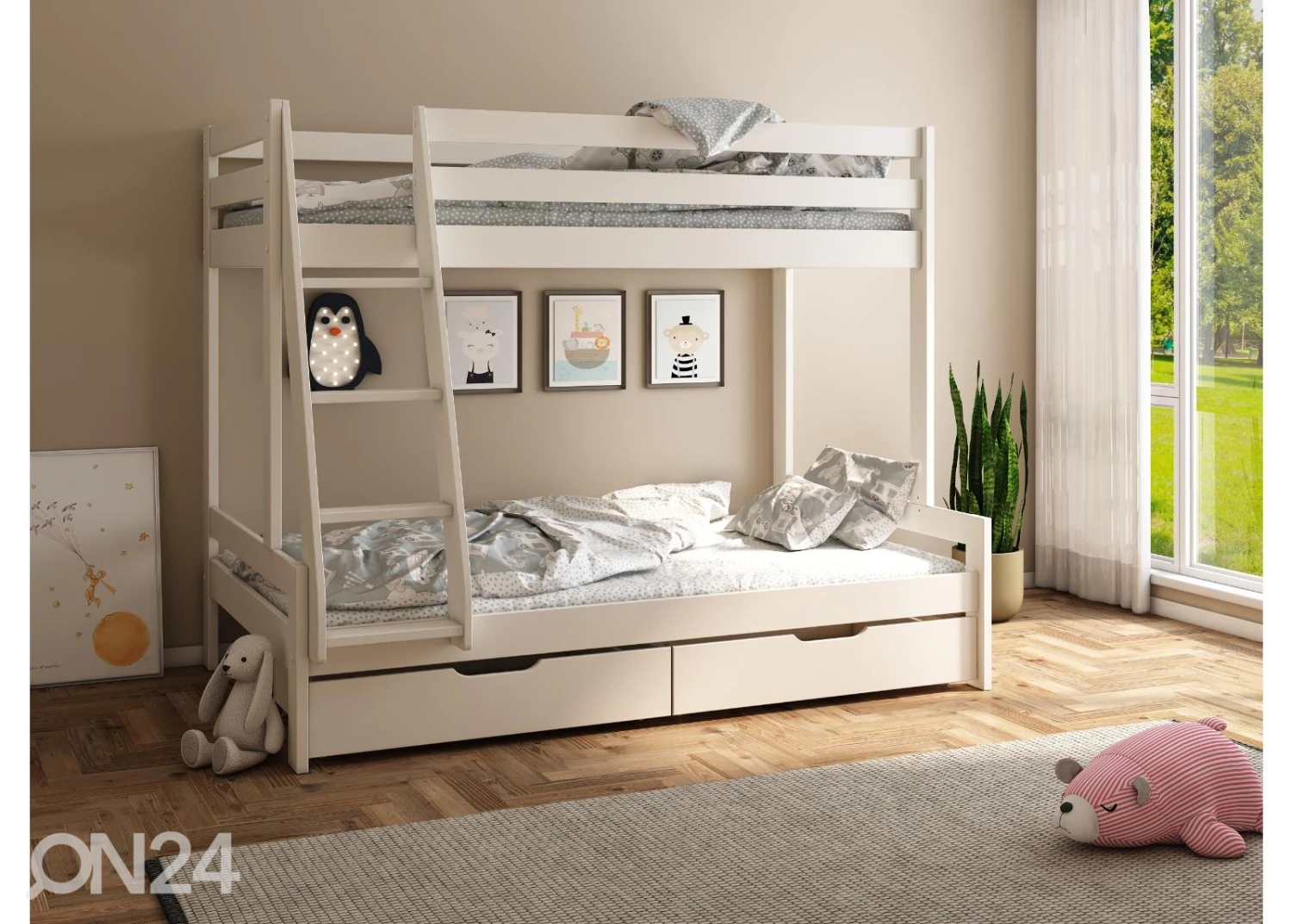 Kerrossänky 90/120×200 cm käytännöllisillä vuodevaatelaatikoilla • sänky on valmistettu männystä • viimeistely: valkoinen • Sängynpohjat sisältyvät toimitukseenKerrossänky 90/120×200 cm käytännöllisillä vuodevaatelaatikoilla•sänky on valmistettu männystä•viimeistely: valkoinen•Sängynpohjat sisältyvät toimitukseen•Patjat eivät sisälly toimitukseen, tilaa sopivat patjat mitoilla 90×200 cm ja 120×200 cm•tuote on testattu laboratoriossa ja vastaa EN 747-2:2012+A1:2015 turvallisuusvaatimuksia•Ylemmän sängyn kantavuus on 100 kg, alemman sängyn 150 kg•tikkaat on sijoitettavissa oikealle tai vasemmalle