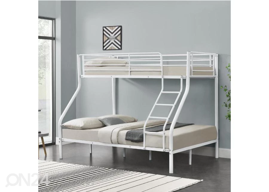 Kerrossänky on valmistettu metallista • Sälepohja sisältyy toimitukseen • Patjat ei sisälly toimitukseen, tilaa sopivat patjat • Tikkaiden askelmien väli on 23 cm • Viimeistely: valkoinenKerrossänky on valmistettu metallista•Sälepohja sisältyy toimitukseen•Patjat ei sisälly toimitukseen, tilaa sopivat patjat•Tikkaiden askelmien väli on 23 cm•Viimeistely: valkoinen