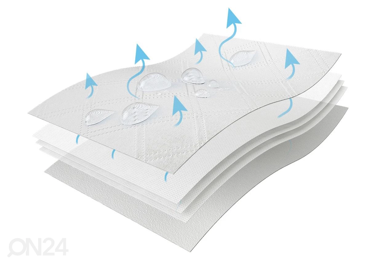 kosteudenkestävä patjasuoja suojaa patjaa kosteudelta, bakteereilta ja pölypunkeilta • hengittävä kaksoismembraani, välissä kolmikerroksinen fleecekosteudenkestävä patjasuoja suojaa patjaa kosteudelta, bakteereilta ja pölypunkeilta•hengittävä kaksoismembraani, välissä kolmikerroksinen fleece•Kätevää kiinnitystä varten päällyksessä on joustava kiinnityskuminauha, joka sopii erikorkuisille patjoille•pestävissä enintään 30 °C lämpötilassa•100% polyesteriä