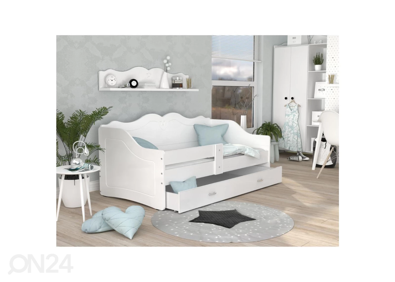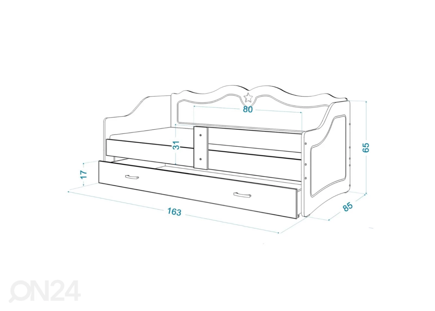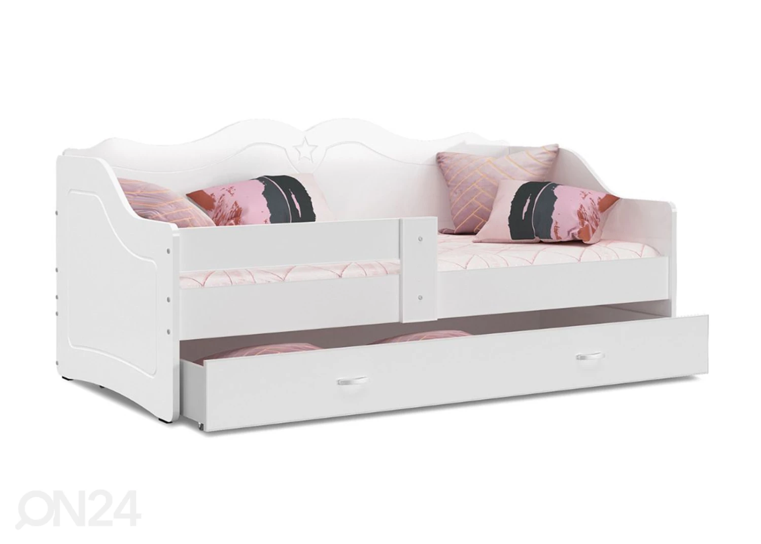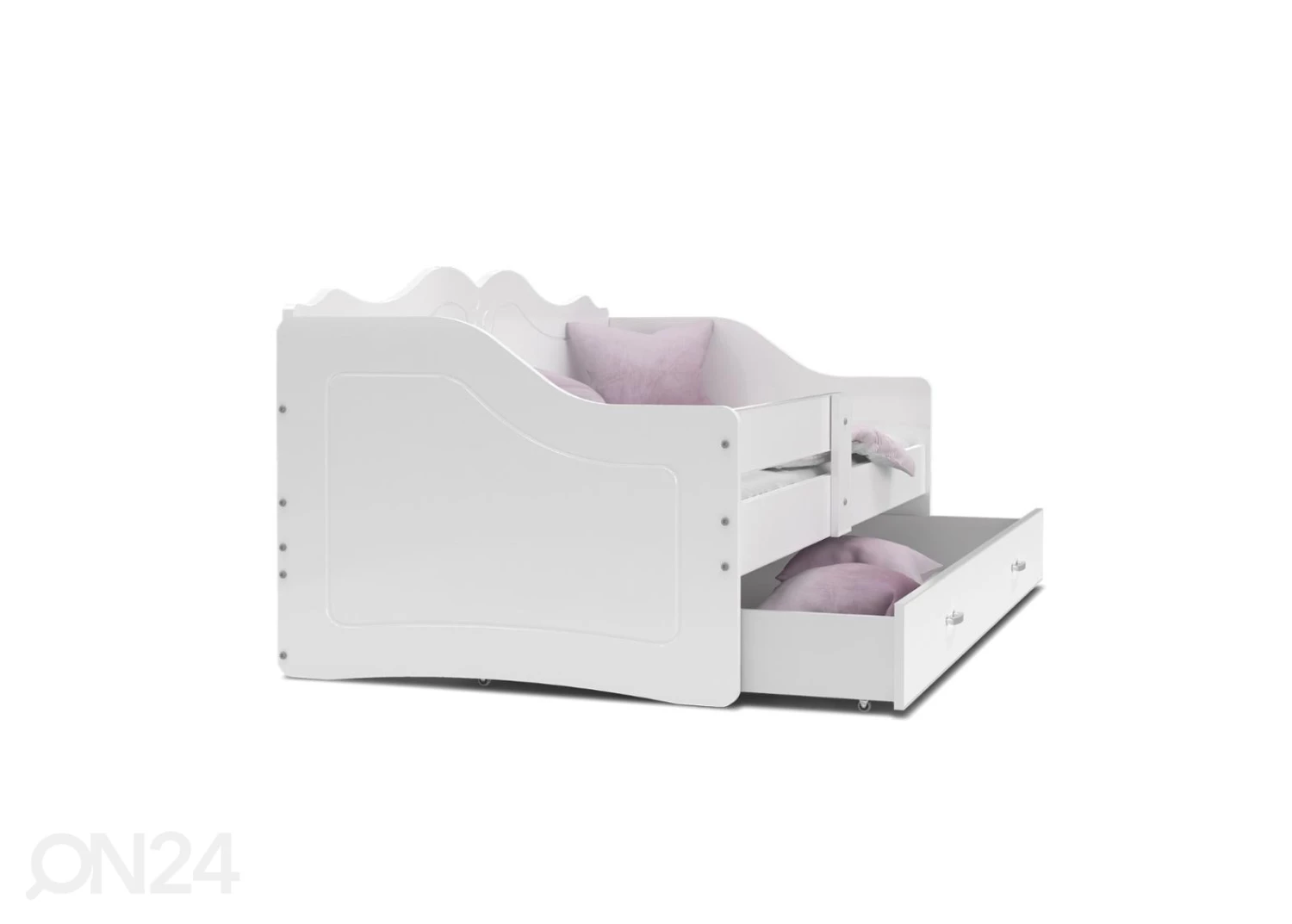 Lasten sänky on valmistettu MDF-kalustelevystä • toimitukseen sisältyy sänky, vuodevaatelaatikko, sängynpohja ja vaahtomuovipatja 80x160x7 cm mitoissa • PVC-reunakanttaus • Laatikossa on metallikiskot • Vetimet on muoviaLasten sänky on valmistettu MDF-kalustelevystä•toimitukseen sisältyy sänky, vuodevaatelaatikko, sängynpohja ja vaahtomuovipatja 80x160x7 cm mitoissa•PVC-reunakanttaus•Laatikossa on metallikiskot•Vetimet on muovia•Kasattavissa myös peilikuvana•sängyn kantavuus on enintään 60 kg