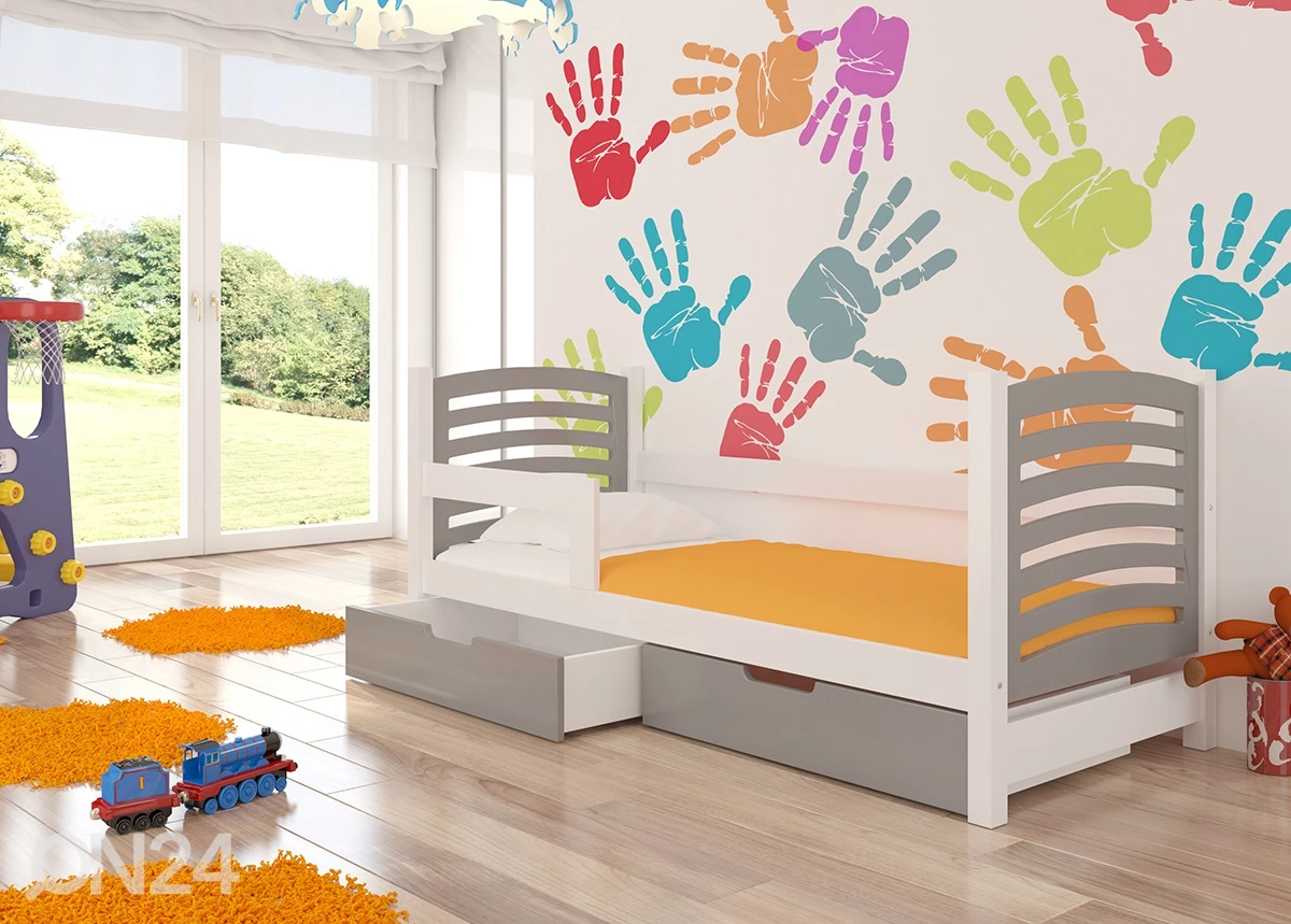 toimitukseen sisältyy sänky, sängynpohjat, kaksi vuodevaatelaatikkoa ja vaahtomuovipatja 75x180x6 cm mitoissa • sängynrunko on valmistettu männystä, päädyt ja vuodevaatelaatikot kalustelevystä • viimeistelty maalilla ja lakallatoimitukseen sisältyy sänky, sängynpohjat, kaksi vuodevaatelaatikkoa ja vaahtomuovipatja 75x180x6 cm mitoissa•sängynrunko on valmistettu männystä, päädyt ja vuodevaatelaatikot kalustelevystä•viimeistelty maalilla ja lakalla•vuodevaatelaatikot liukuvat pyörillä•kantavuus enintään: 80 kg•viimeistely: valkoinen/ harmaa