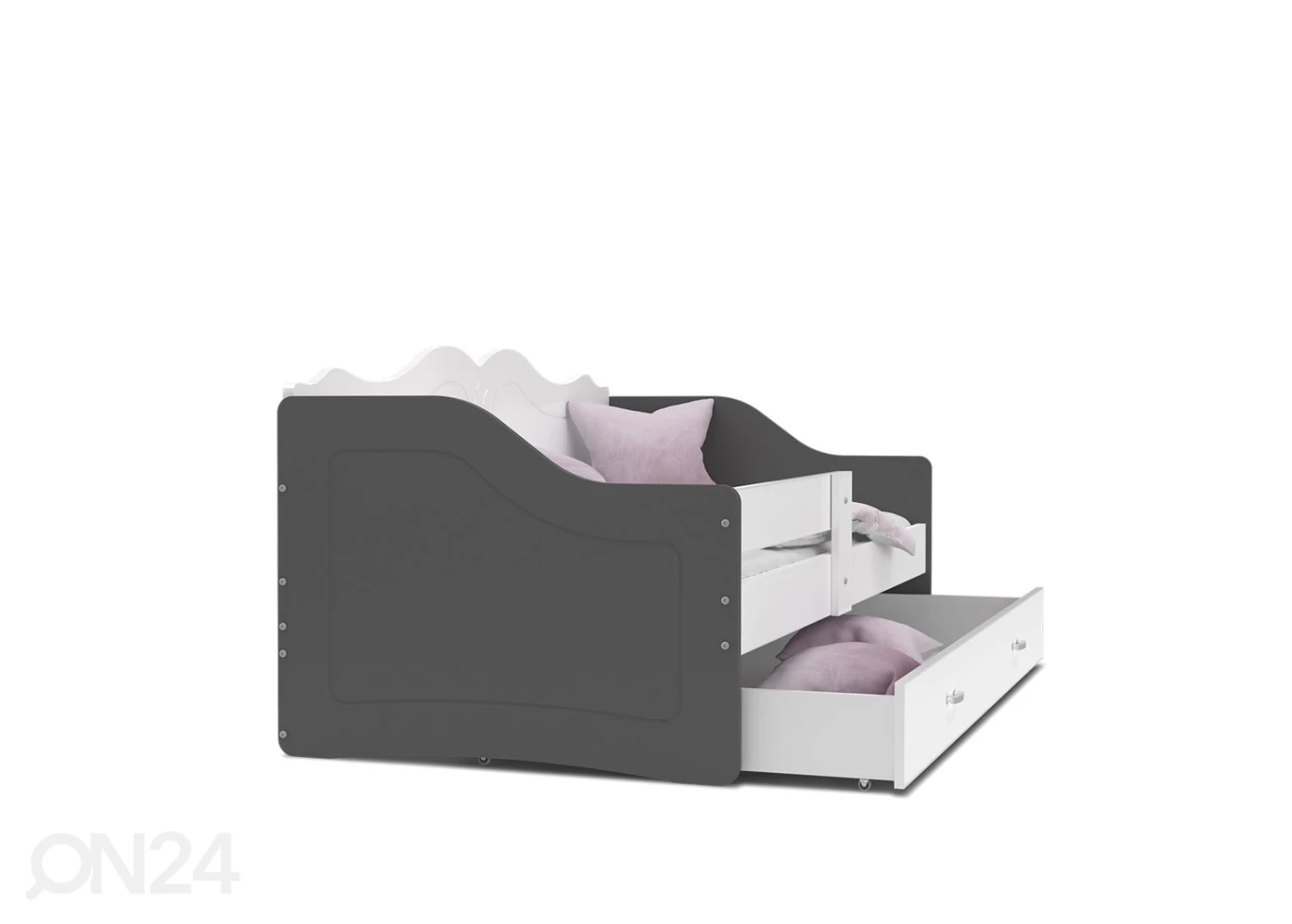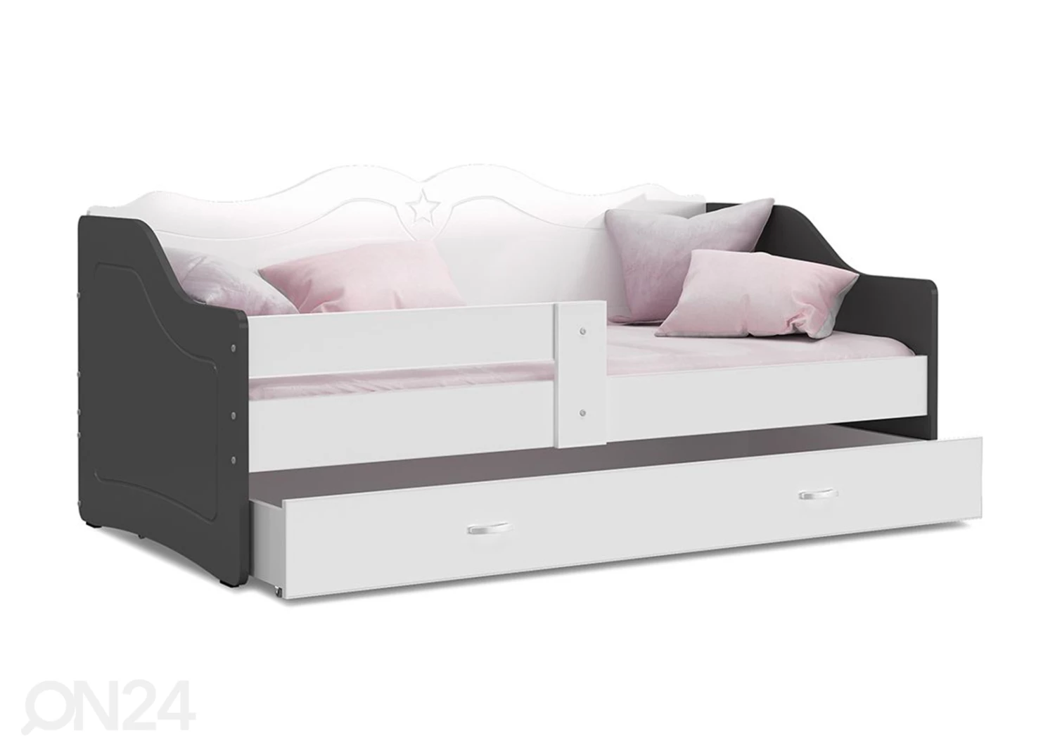 Lastensänky on valmistettu MDF-kalustelevystä • toimitukseen sisältyy sänky, vuodevaatelaatikko, sängynpohja ja vaahtomuovipatja 80x160x7 cm mitoissa • PVC-reunakanttaus • Laatikossa on metallikiskot • vetimet on muoviaLastensänky on valmistettu MDF-kalustelevystä•toimitukseen sisältyy sänky, vuodevaatelaatikko, sängynpohja ja vaahtomuovipatja 80x160x7 cm mitoissa•PVC-reunakanttaus•Laatikossa on metallikiskot•vetimet on muovia•kasattavissa myös peilikuvana•sängyn kantavuus on enintään 60 kg•Viimeinen tuotekuva on havainnollistava