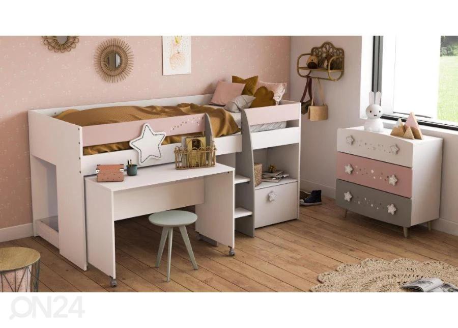 Puolikorkea parvisänky on valmistettu laadukkaasta MDF-levystä • maalattu terveydelle turvallisilla väreillä • ei teräviä kulmia • Toimitukseen sisältyy sänky, työpöytä, laatikko pyörillä ja sängynpohjaPuolikorkea parvisänky on valmistettu laadukkaasta MDF-levystä•maalattu terveydelle turvallisilla väreillä•ei teräviä kulmia•Toimitukseen sisältyy sänky, työpöytä, laatikko pyörillä ja sängynpohja•patja ei sisälly toimitukseen, tilaa sopiva patja 90×200 cm mitoissa•Viimeistely: valkoinen/ harmaa/ vaaleanpunainen