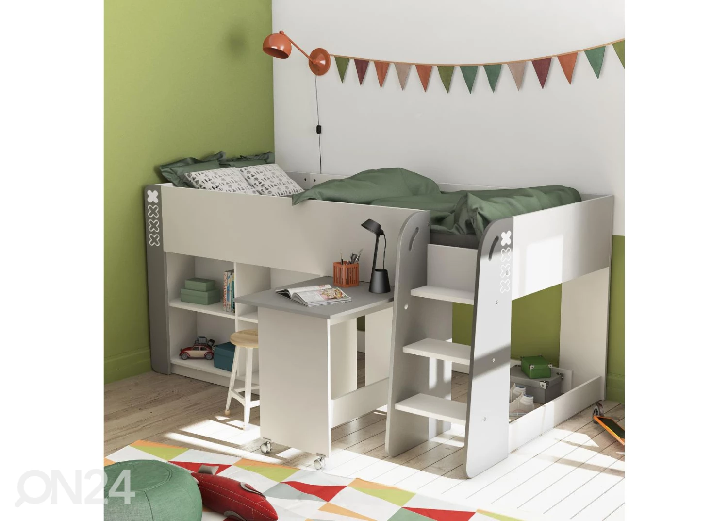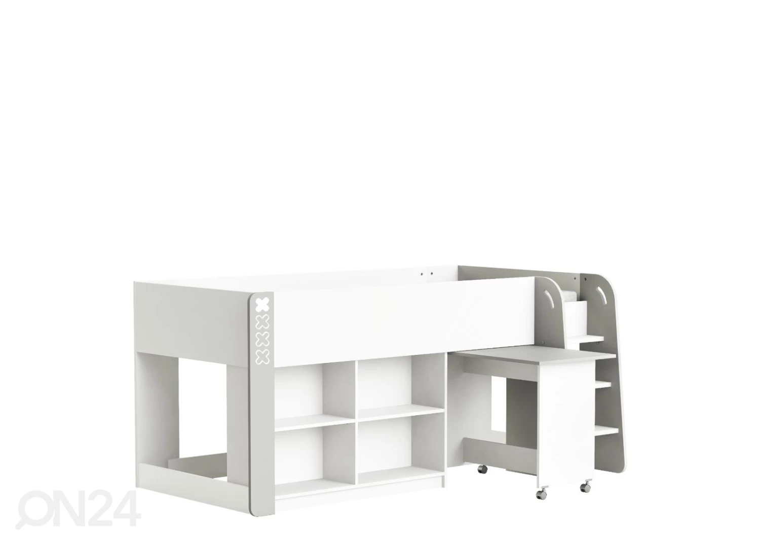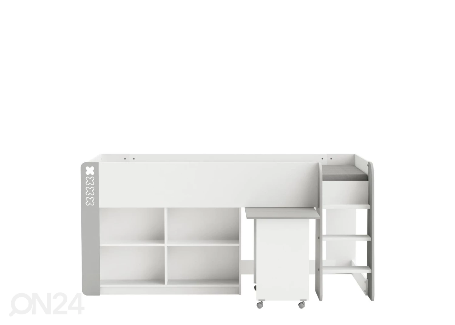 Monipuolinen sänky on valmistettu 15 mm ja 18 mm paksusta foliopinnoitetusta kalustelevystä ja MDF-levystä • Viimeistelty terveydelle vaarattomilla vesiohenteisilla maaleilla • osissa on kaarevat reunat, jotta lapset eivät satuta itseäänMonipuolinen sänky on valmistettu 15 mm ja 18 mm paksusta foliopinnoitetusta kalustelevystä ja MDF-levystä•Viimeistelty terveydelle vaarattomilla vesiohenteisilla maaleilla•osissa on kaarevat reunat, jotta lapset eivät satuta itseään•4 hyllyä 53×29 cm mitoilla•Pyörillä varustettu tietokonepöytä 85×50 cm, kantavuus enintään 20 kg•Toimitukseen sisältyy kalustelevystä valmistettu sängynpohja•patja ei sisälly toimitukseen, tilaa sopiva patja 90×200 cm mitoissa