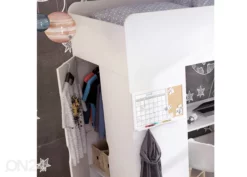 Parvisänky, jonka alaosassa työpöytä, hylly ja vaatekaappi on valmistettu laminoidusta lastulevystä • Reunoissa on ABS-kanttaukset • Toimitus sisältää Bonnel-jousitetun patjan 90×200 cm • Kaapin ovien takana on 1 hylly ja 1 vaatetankoParvisänky, jonka alaosassa työpöytä, hylly ja vaatekaappi on valmistettu laminoidusta lastulevystä•Reunoissa on ABS-kanttaukset•Toimitus sisältää Bonnel-jousitetun patjan 90×200 cm•Kaapin ovien takana on 1 hylly ja 1 vaatetanko•ei ole kasattavissa peilikuvana•sängyn levein kohta 121×204 cm, makuutila 90×200 cm•Viimeistely: valkoinen/harmaa