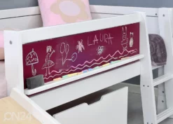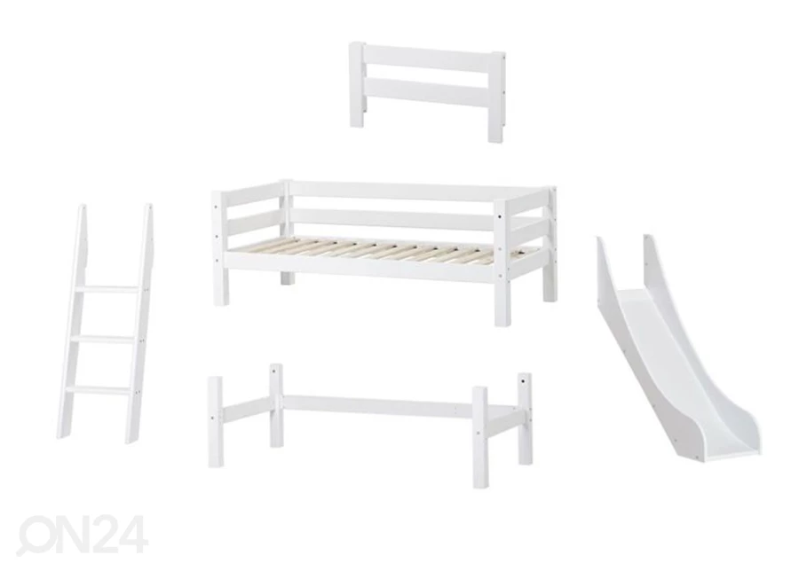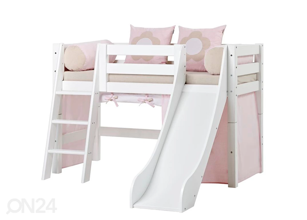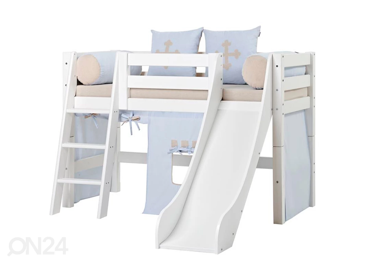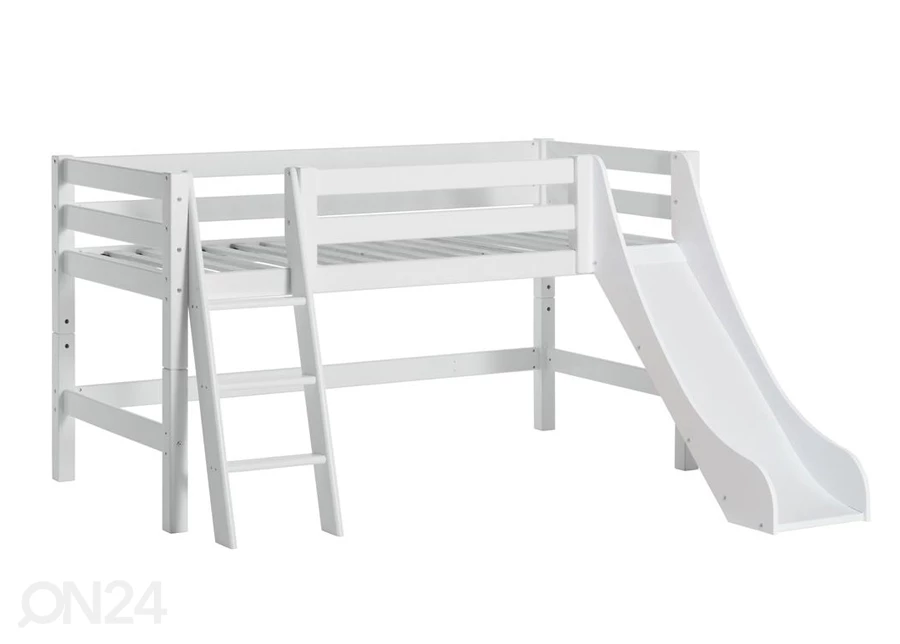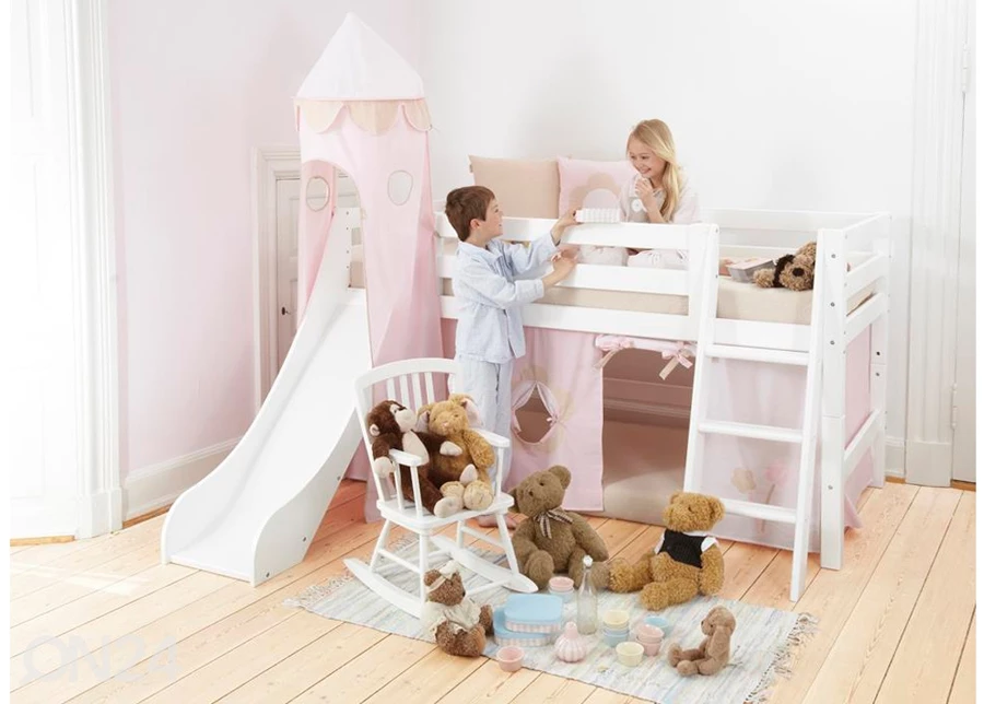 Parvisänky on valmistettu puusta, FSC sertifikaatti • laadukas lastensänky liukumäellä on valmistettu männystä • varustettu korkeammalla turvalaidallaParvisänky on valmistettu puusta, FSC sertifikaatti•laadukas lastensänky liukumäellä on valmistettu männystä•varustettu korkeammalla turvalaidalla•tuotteella on Pohjoismaiden ympäristömerkki (Nordic Ecolabel), joka vastaa tiukoille ympäristö- ja laatuvaatimuksille•käsitelty vesiohenteisella lakalla, ei sisällä minkäänlaisia haitallisia kemikaaleja•viimeistely: valkoinen lakka•sängynpohja sisältyy toimitukseen•patjat, verhot, torni ja patja eivät sisälly toimitukseen, tilaa sopiva patja 70×160 cm mitoissa (patjan paksuus enintään 12 cm)•liukumäki ja tikkaat ovat vaihdettavissa keskenään•sänkyä voi käyttää myös matalana sänkynä•kantavuus enintään: 100 kg•valmistettu Latviassa
