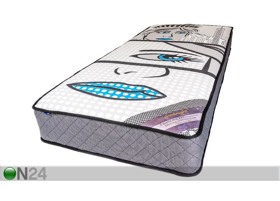 patjassa on 7-kerroksinen pakattu taskujousitus • Memory foam-kerros, paksuus 2 cm • materiaali: puuvilla tikattu polyesterikangas • 252 jousta m², 7-kerroksisen jousituksen jousien läpimitat: 1,8/2,0/2,2 mmpatjassa on 7-kerroksinen pakattu taskujousitus•Memory foam-kerros, paksuus 2 cm•materiaali: puuvilla tikattu polyesterikangas•252 jousta m², 7-kerroksisen jousituksen jousien läpimitat: 1,8/2,0/2,2 mm•eri kerrokset tukevat kehoa eri tavoin (selän yläosa, lantio ja kantapäät tukeutuvat osiin, joissa on paksumpi/jäykempi jousi, joka antaa omalta osaltaan enemmän tukea) taaten anatoomillisesti oikean, rentoutuneen kehon asennon•päällinen ei ole irrotettava