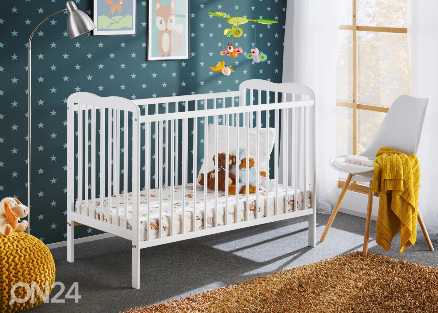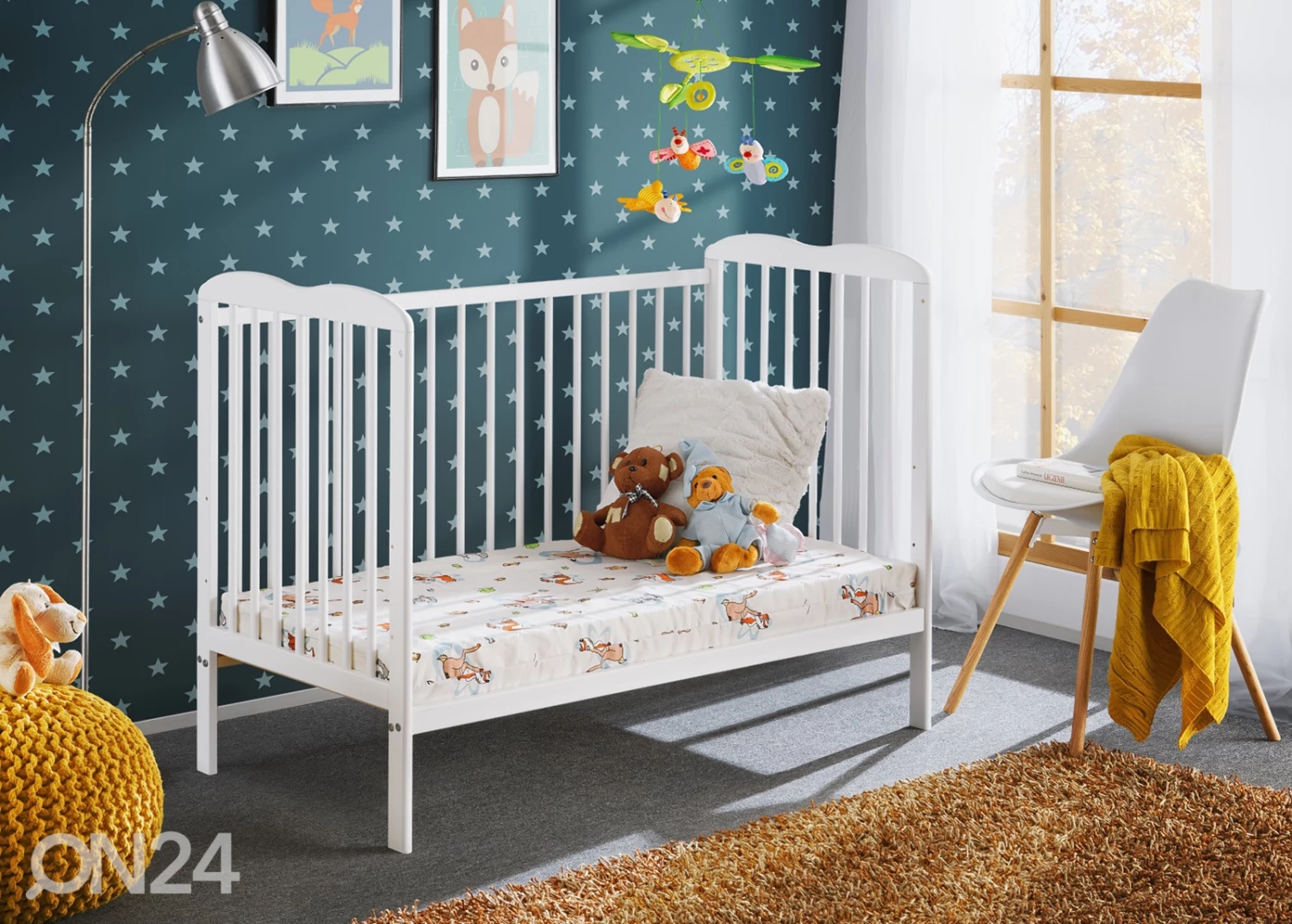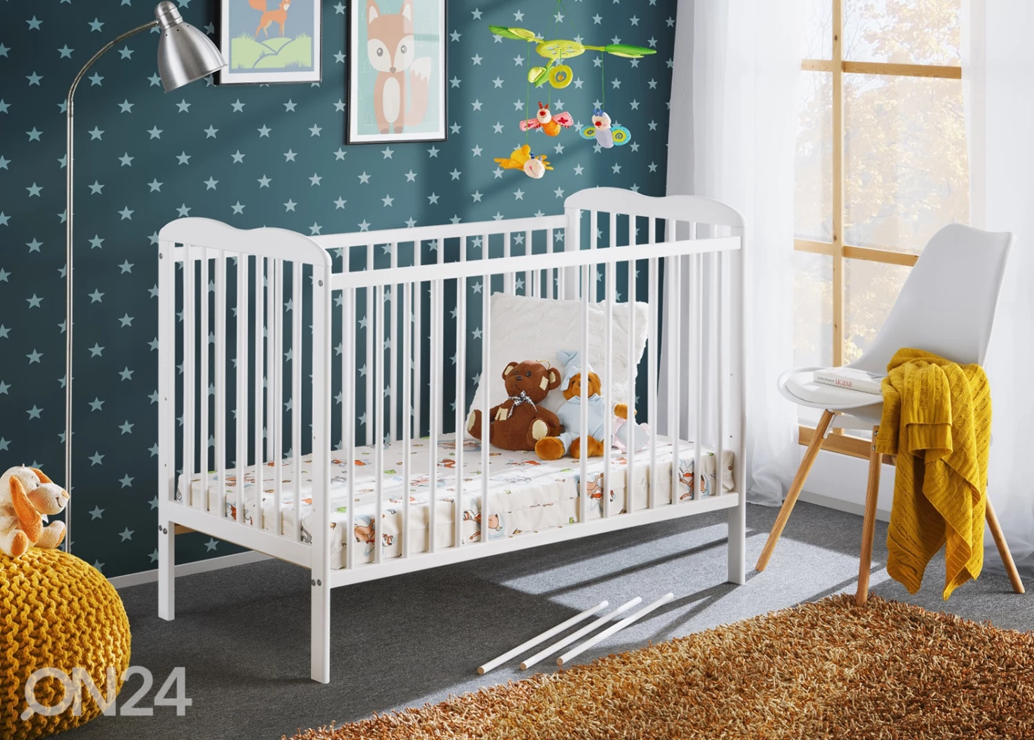 Männystä (FSC sertifikaatti) valmistettu pinnasänky 60×120 cm • viimeistely: matta valkoinen • Sänky toimitukseen sisältyy sängynpohja, patja ja vuodevaatelaatikko metallikiskoilla • sängynpohja on säädettävissä kolmelle eri korkeudelleMännystä (FSC sertifikaatti) valmistettu pinnasänky 60×120 cm•viimeistely: matta valkoinen•Sänky toimitukseen sisältyy sängynpohja, patja ja vuodevaatelaatikko metallikiskoilla•sängynpohja on säädettävissä kolmelle eri korkeudelle•3 irrotettavaa pinnaa•Lapsen kasvaessa sängystä voi irrottaa laidat ja korkeat reunat