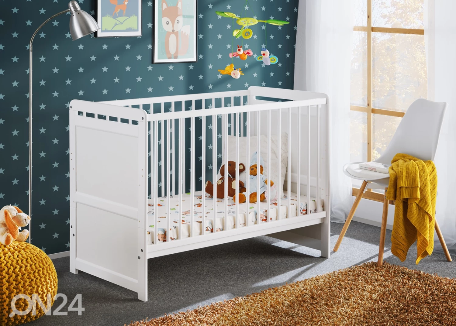 Männystä (FSC sertifikaatti) valmistettu pinnasänky 60×120 cm • viimeistely: matta valkoinen • Sänky toimitukseen sisältyy sängynpohja ja patja • sängynpohja on säädettävissä kolmelle eri korkeudelle • 3 irrotettavaa pinnaaMännystä (FSC sertifikaatti) valmistettu pinnasänky 60×120 cm•viimeistely: matta valkoinen•Sänky toimitukseen sisältyy sängynpohja ja patja•sängynpohja on säädettävissä kolmelle eri korkeudelle•3 irrotettavaa pinnaa•Lapsen kasvaessa sängystä voi irrottaa laidat ja korkeat reunat