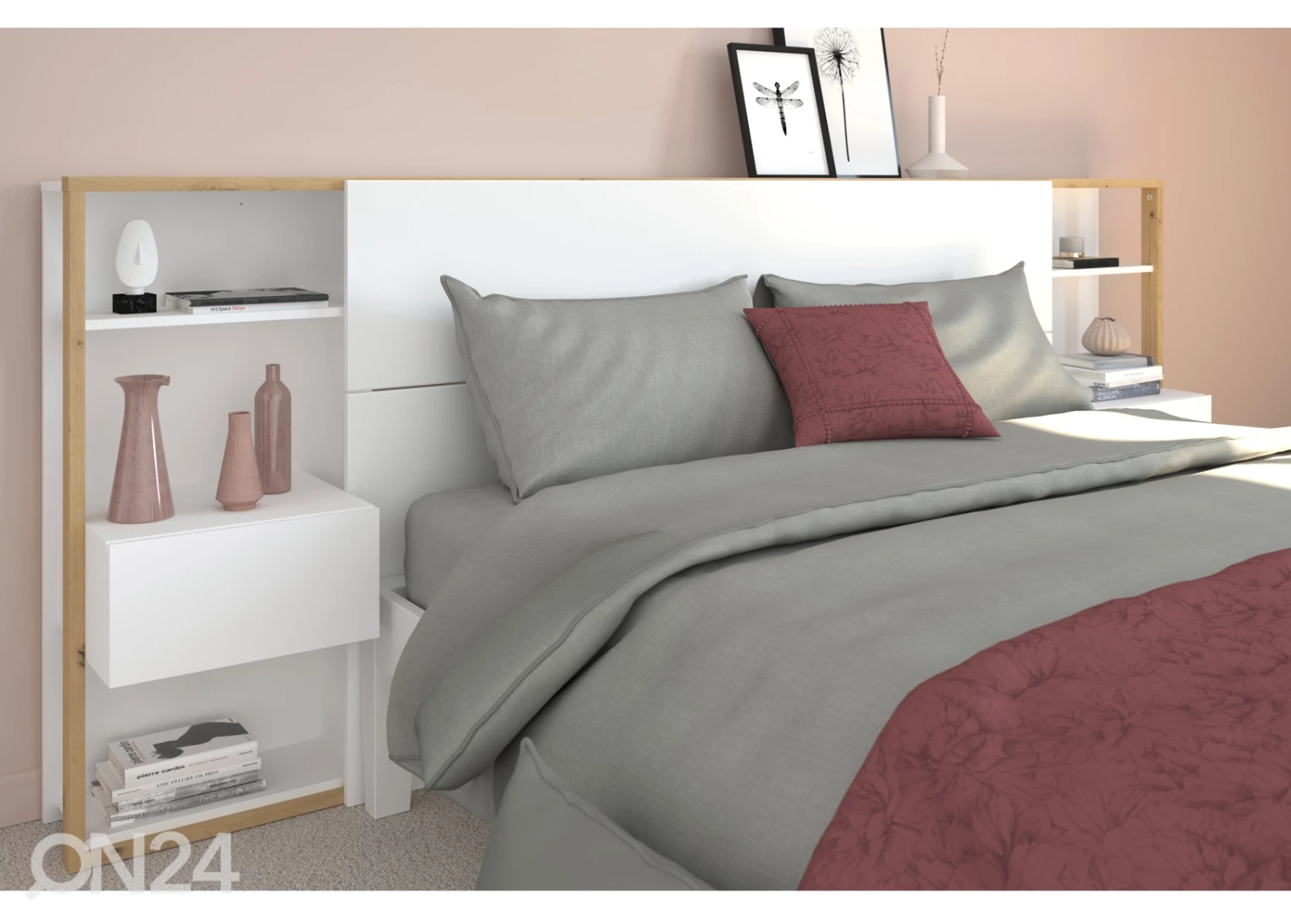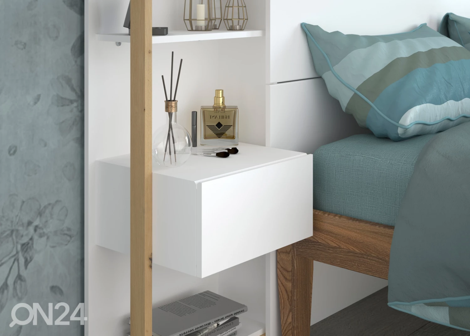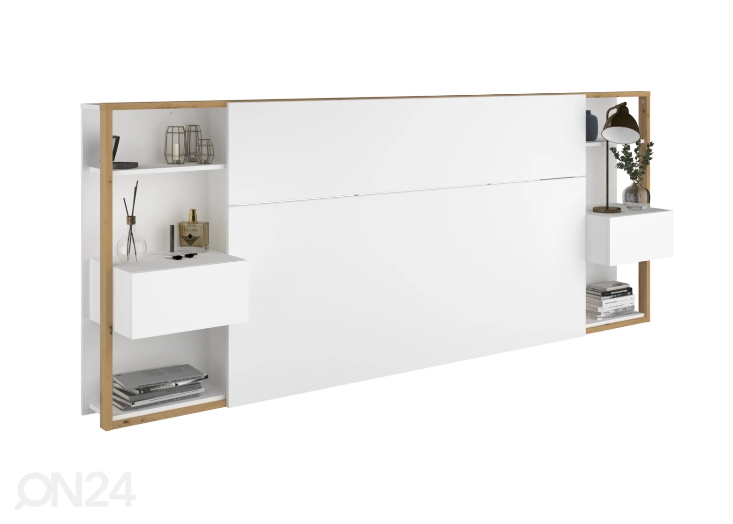 Sängyn päätyhylly on valmistettu korkealaatuisesta 15 mm: n huonekalulevystä, joka täyttää eurooppalaiset terveysvaatimukset • viimeistely: valkoinen/ artison tammi • Tarkoitettu 140 cm ja 160 cm leveisiin sänkyihinSängyn päätyhylly on valmistettu korkealaatuisesta 15 mm: n huonekalulevystä, joka täyttää eurooppalaiset terveysvaatimukset•viimeistely: valkoinen/ artison tammi•Tarkoitettu 140 cm ja 160 cm leveisiin sänkyihin•6 hyllyä 18 cm ja 33 cm syvyyksillä•2 laatikkoa metallikiskoilla (laatikon syvyys 29cm)