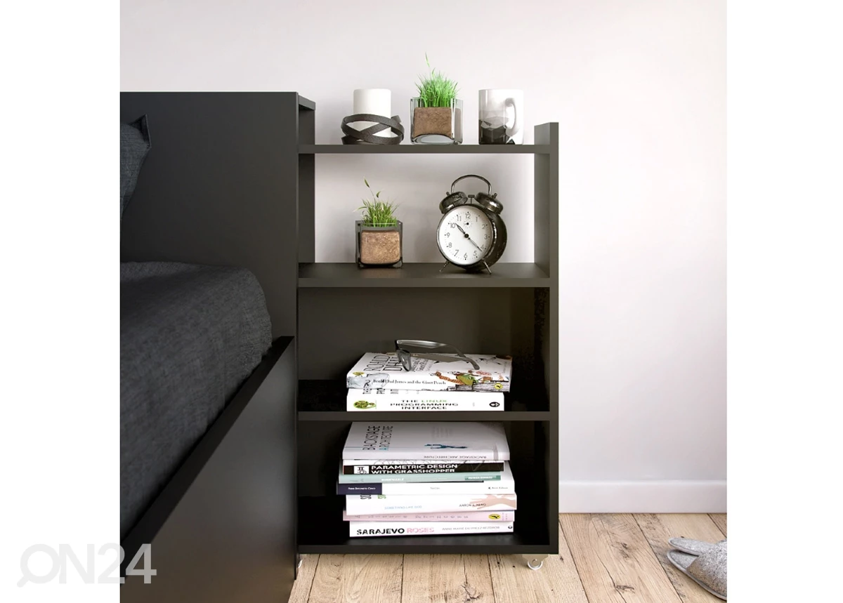 valmistettu laadukkaasta kalustelevystä • sopii Naia 140×190 cm sänkyyn • hyllystön alla on pyörät, hyllystö on työnnettävissä sängynpäädyn sisään • viimeistely: matta mustavalmistettu laadukkaasta kalustelevystä•sopii Naia 140×190 cm sänkyyn•hyllystön alla on pyörät, hyllystö on työnnettävissä sängynpäädyn sisään•viimeistely: matta musta