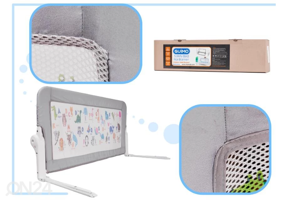 Helppo asentaa, laitetaan patjan alle • materiaali: metallikehys, muovi, polyesteri • leveys 94 cm • leveys ilman kehystä 90 cm • korkeus 48,5 cm • jalan pituus patjan alla 35 cmHelppo asentaa, laitetaan patjan alle•materiaali: metallikehys, muovi, polyesteri•leveys 94 cm•leveys ilman kehystä 90 cm•korkeus 48,5 cm•jalan pituus patjan alla 35 cm
