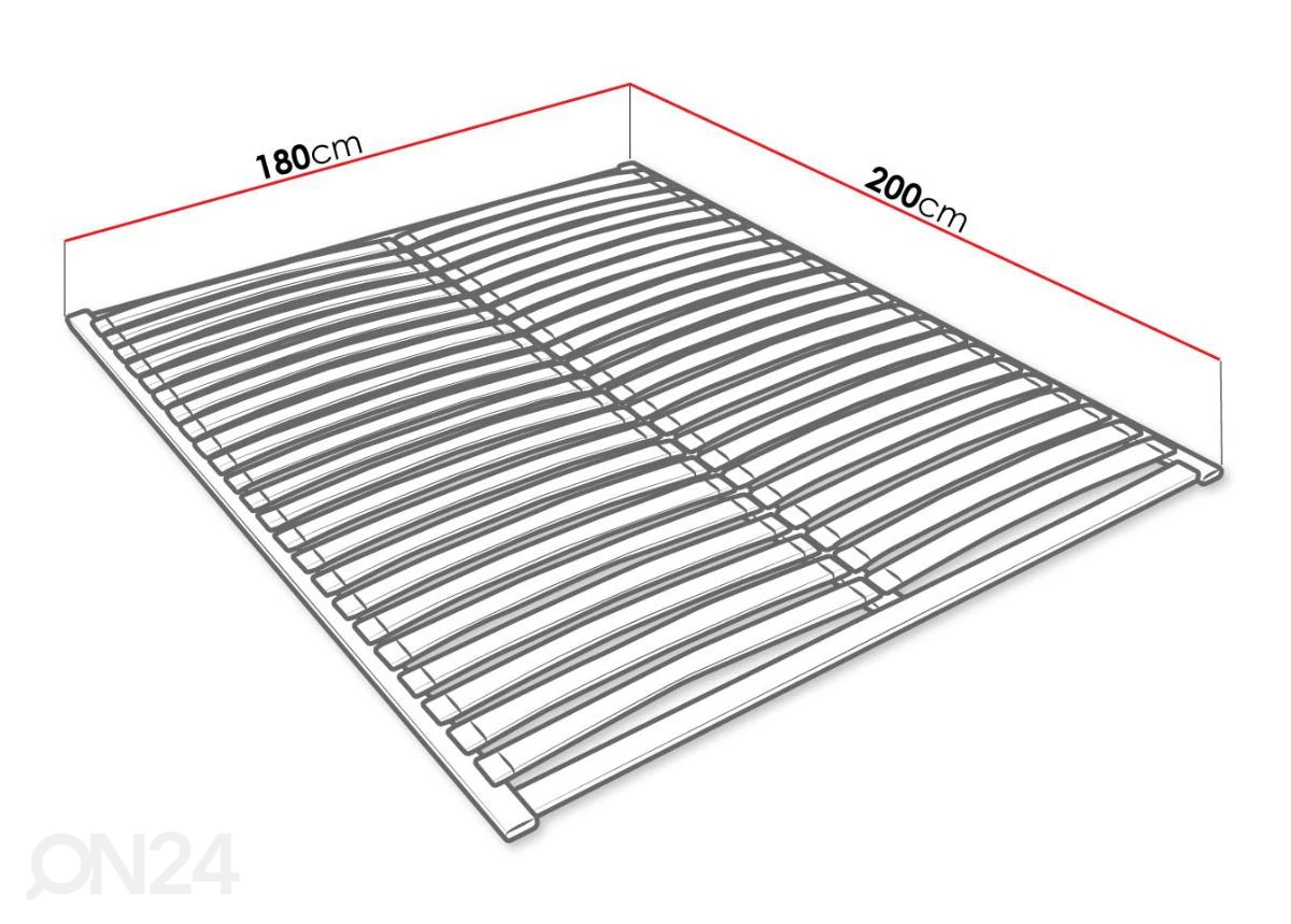 puinen sängynpohja sopii 180×200 cm sänkyyn, jossa on keskellä yksi pitkä rima • sängyn pohjakehikko on valmistettu puusta, säleet ovat vaneria • Koostuu 23 säleestä, leveydellä 53 mm • Säleiden välinen etäisyys: 27 mmpuinen sängynpohja sopii 180×200 cm sänkyyn, jossa on keskellä yksi pitkä rima•sängyn pohjakehikko on valmistettu puusta, säleet ovat vaneria•Koostuu 23 säleestä, leveydellä 53 mm•Säleiden välinen etäisyys: 27 mm•säleet kiinnityvät runkoon muovikiinnityksillä•sängynpohjan keskellä on kannatinpalkki