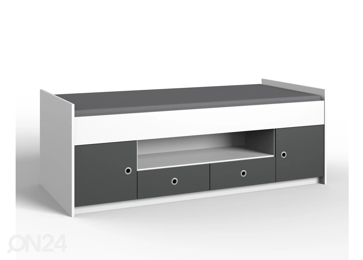 Käytännöllisessä foliopinnoitetusta kalustelevystä valmistetussa lsängyssä on säilytystilaa • 2 ovea ja 2 laatikkoa • laatikoissa on metallikiskot • patja ja sängynpohja eivät sisälly toimitukseen, tilaa patja ja sälepohja 90×200 cm mitoissaKäytännöllisessä foliopinnoitetusta kalustelevystä valmistetussa lsängyssä on säilytystilaa•2 ovea ja 2 laatikkoa•laatikoissa on metallikiskot•patja ja sängynpohja eivät sisälly toimitukseen, tilaa patja ja sälepohja 90×200 cm mitoissa•Viimeistely: valkoinen/ grafiitti