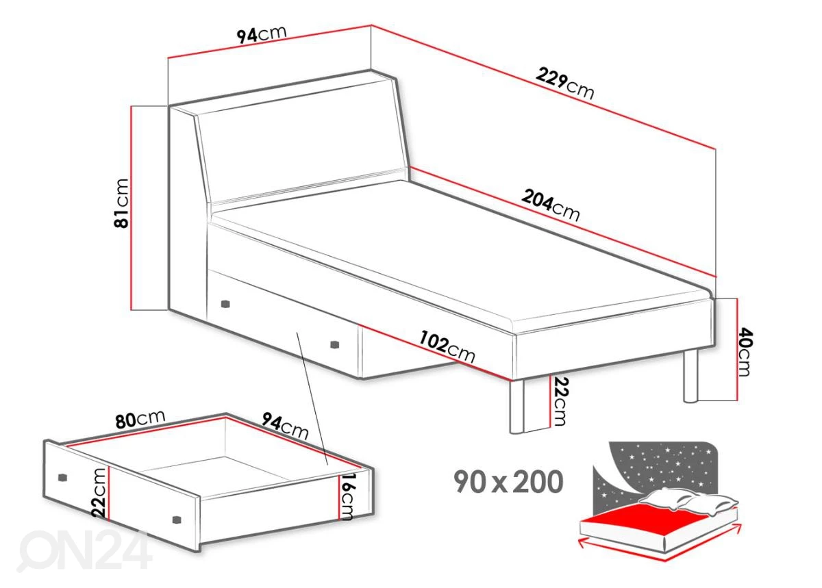 | Kalusteen lisäominaisuus | vuodevaatelaatikko |