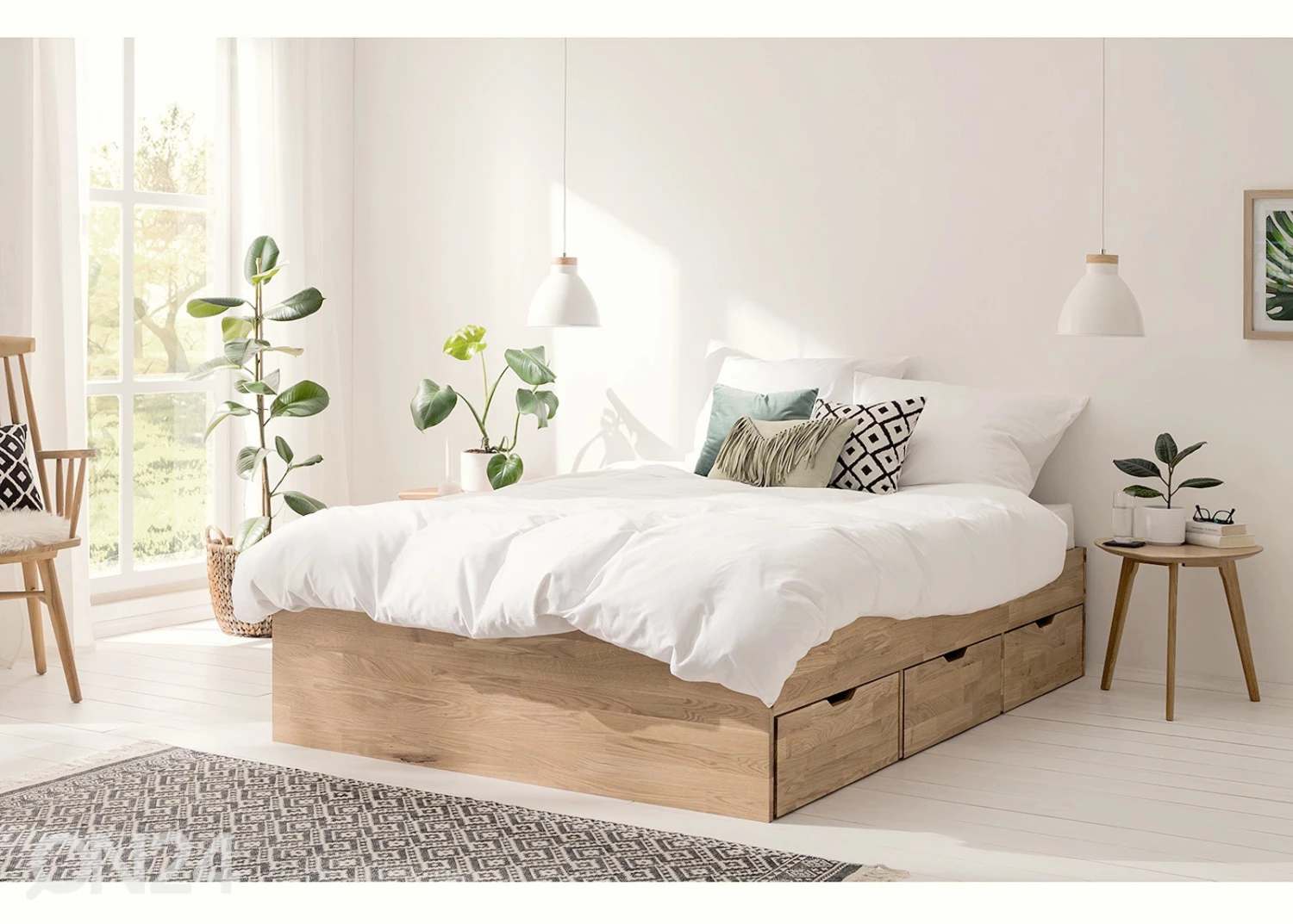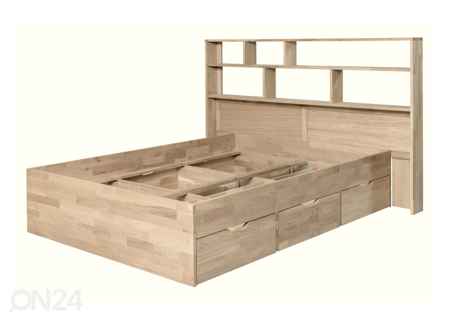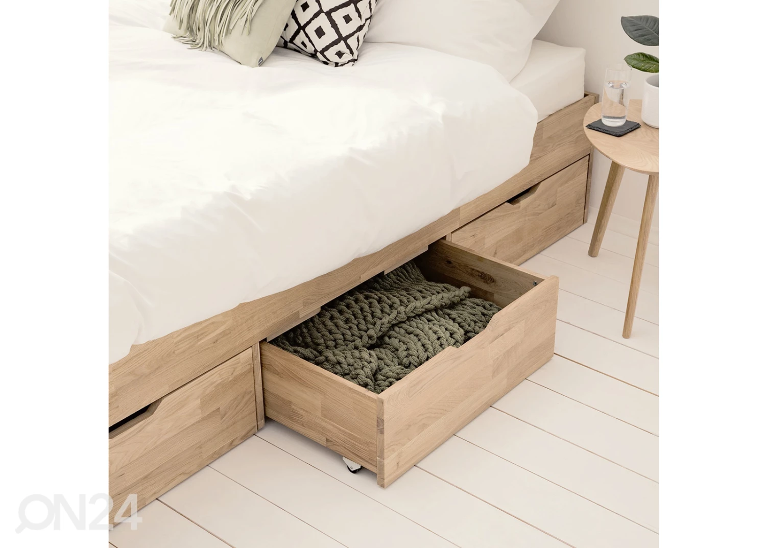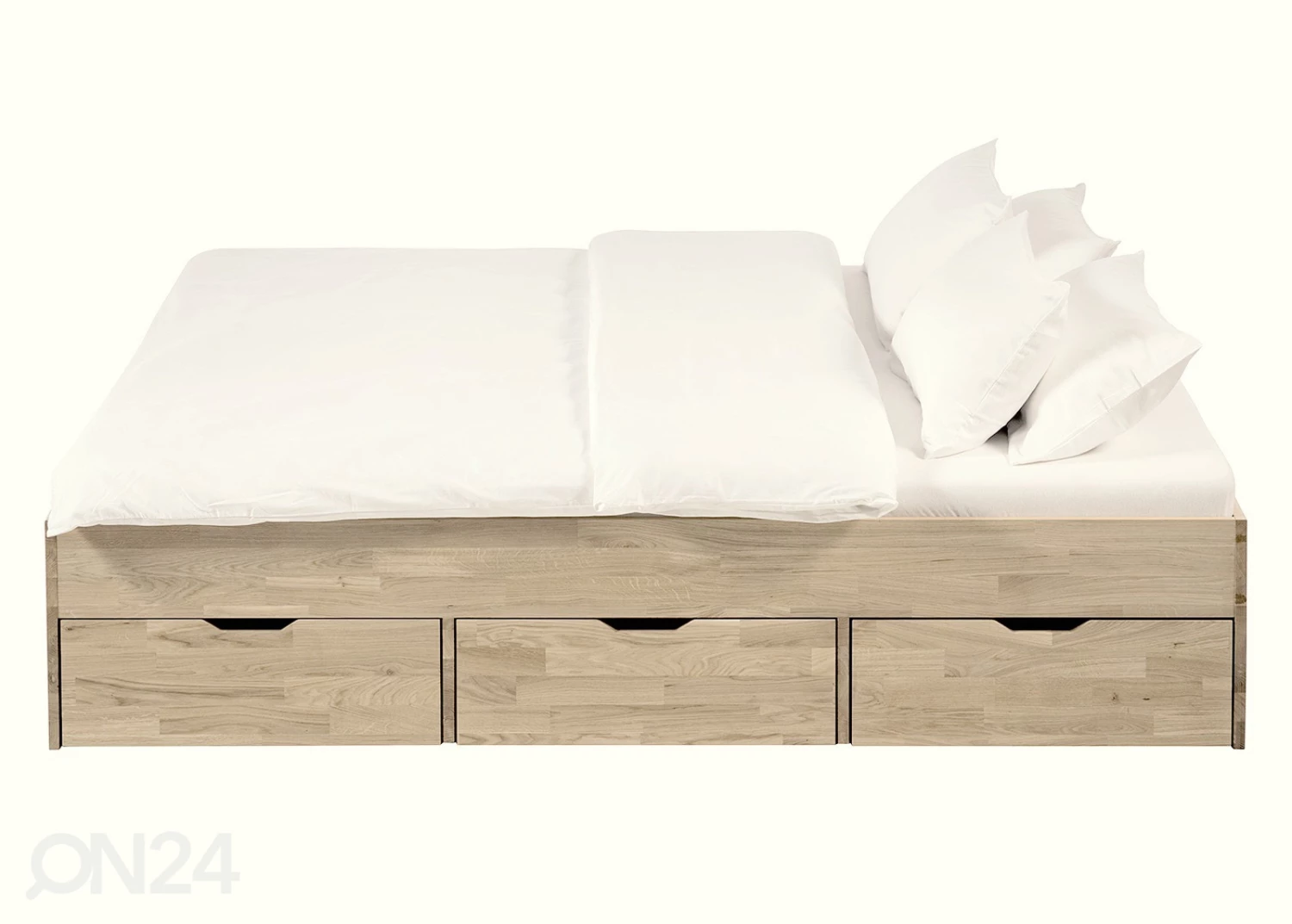 Sänky on valmistettu laadukkaasta tammesta • viimeistely: valkoinen öljy • Sängyssä on molemmilla puolilla 3 säilytyslaatikkoa (yhteensä 6) • Vuodevaatelaatikot on varustettu pyörilläSänky on valmistettu laadukkaasta tammesta•viimeistely: valkoinen öljy•Sängyssä on molemmilla puolilla 3 säilytyslaatikkoa (yhteensä 6)•Vuodevaatelaatikot on varustettu pyörillä•Yhden vuodevaatelaatikon mitat: leveys 61 cm, syvyys 56 cm, korkeus 16,4 cm ja laatikon etupaneelin korkeus 22 cm•Tukeva havupuinen sälepohja sisältyy toimitukseen (säleiden paksuus 15 mm, yhden säleen leveys 68 mm)•Patja ei sisälly toimitukseen, tilaa sopiva patja ja petauspatja 140×200 cm•Huom! Pöytä ja sängynpääty eivät sisälly toimitukseen, sängynpääty on tilattavissa erikseen•Aito tammi on luonnonmateriaalia, ja tuotteen todellinen sävy voi poiketa kuvassa esitetystä