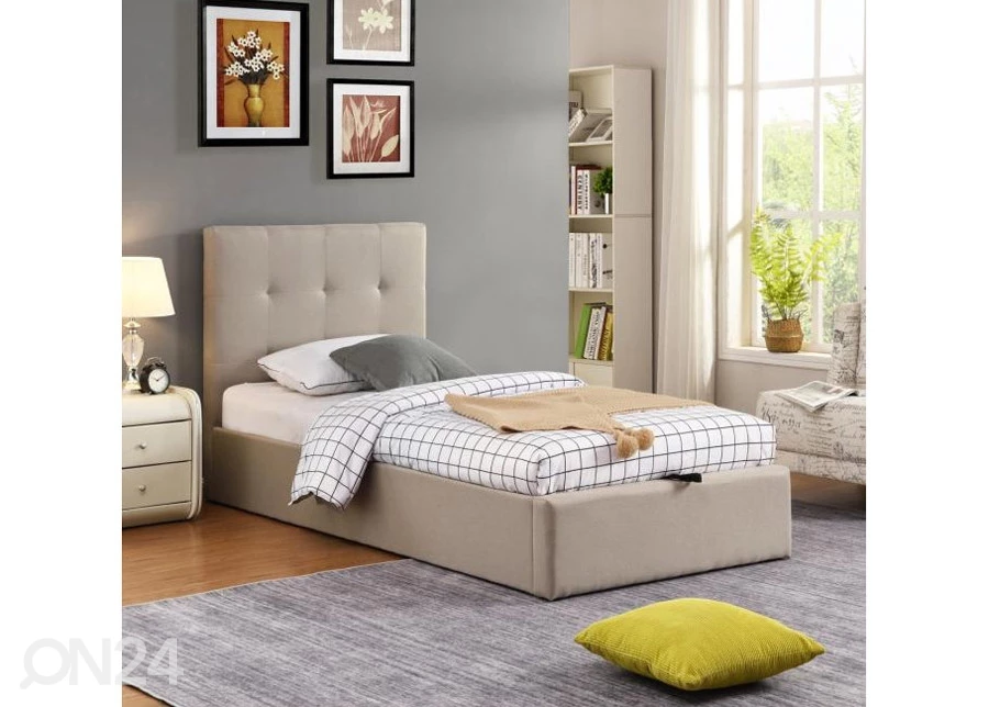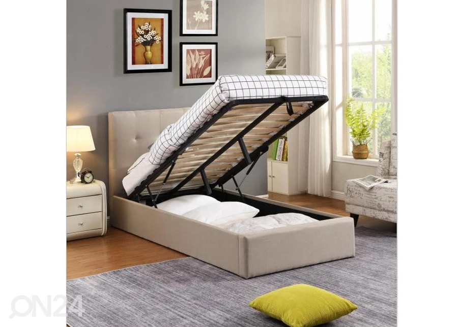 sänky vuodevaatelaatikolla on valmistettu laadukkaasta lastulevystä • Viimeistelty harmahtavan beigellä polyesterikankaalla • kevyesti nostomekanismilla avattava vuodevaatelaatikko antaa sängylle lisäkäytännöllisyyttäsänky vuodevaatelaatikolla on valmistettu laadukkaasta lastulevystä•Viimeistelty harmahtavan beigellä polyesterikankaalla•kevyesti nostomekanismilla avattava vuodevaatelaatikko antaa sängylle lisäkäytännöllisyyttä•Sängynpohja koostuu 14 vanerisäleestä•patja ei sisälly toimitukseen, tilaa sopiva patja ja petauspatja 90×200 cm mitoissa•materiaali: kalustelevy, metalli, muovi