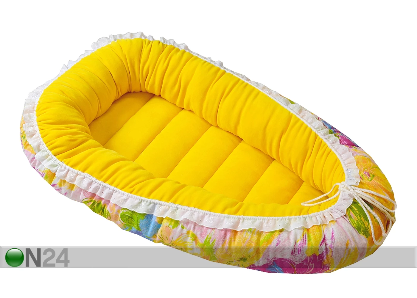 Vauvan unipesä sopii lapselle 6. kuukauden ikään asti • toinen puoli on 100% puuvillaa, toinen puoli pehmeää veluuria 95% puuvillaa / 5% elastaania, Öko-Tex Standard 100 -sertifioitu • täytemateriaali: fiiberikuitu/vatiiniVauvan unipesä sopii lapselle 6. kuukauden ikään asti•toinen puoli on 100% puuvillaa, toinen puoli pehmeää veluuria 95% puuvillaa / 5% elastaania, Öko-Tex Standard 100 -sertifioitu•täytemateriaali: fiiberikuitu/vatiini•käytettävissä kahdella tavalla (laidat on käännettävissä yhdelle tai toiselle puolelle)•pesän leveys ja pituus ovat narulla säädettävissä•Vauvapesän ulkomitat kiinnisidottuna: 50x85x13 cm, narujen olessa auki: 60x95x13 cm•HUOM! varoitus: älkää käyttäkö tuotetta, jos se on rikkoutunut tai revennyt