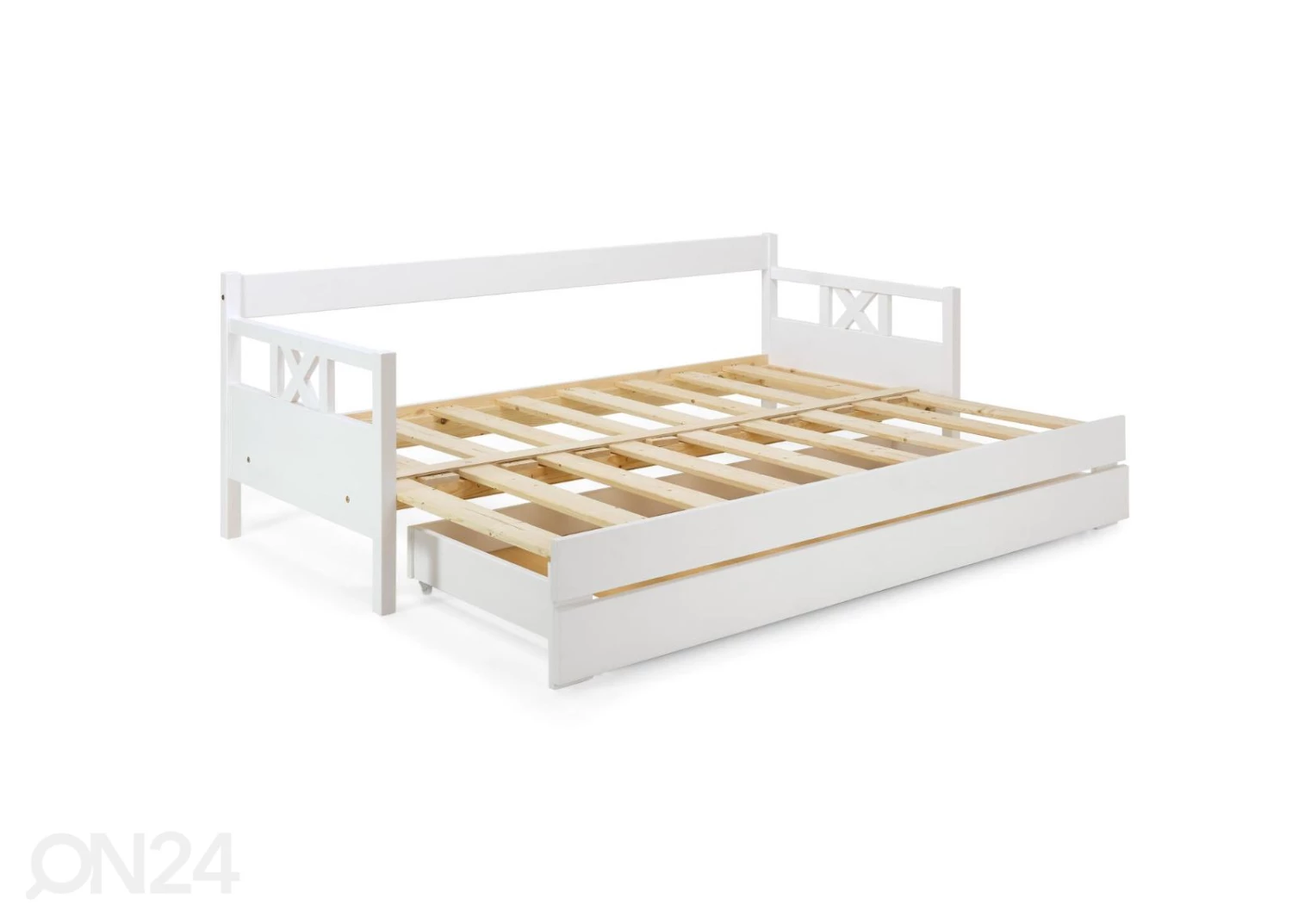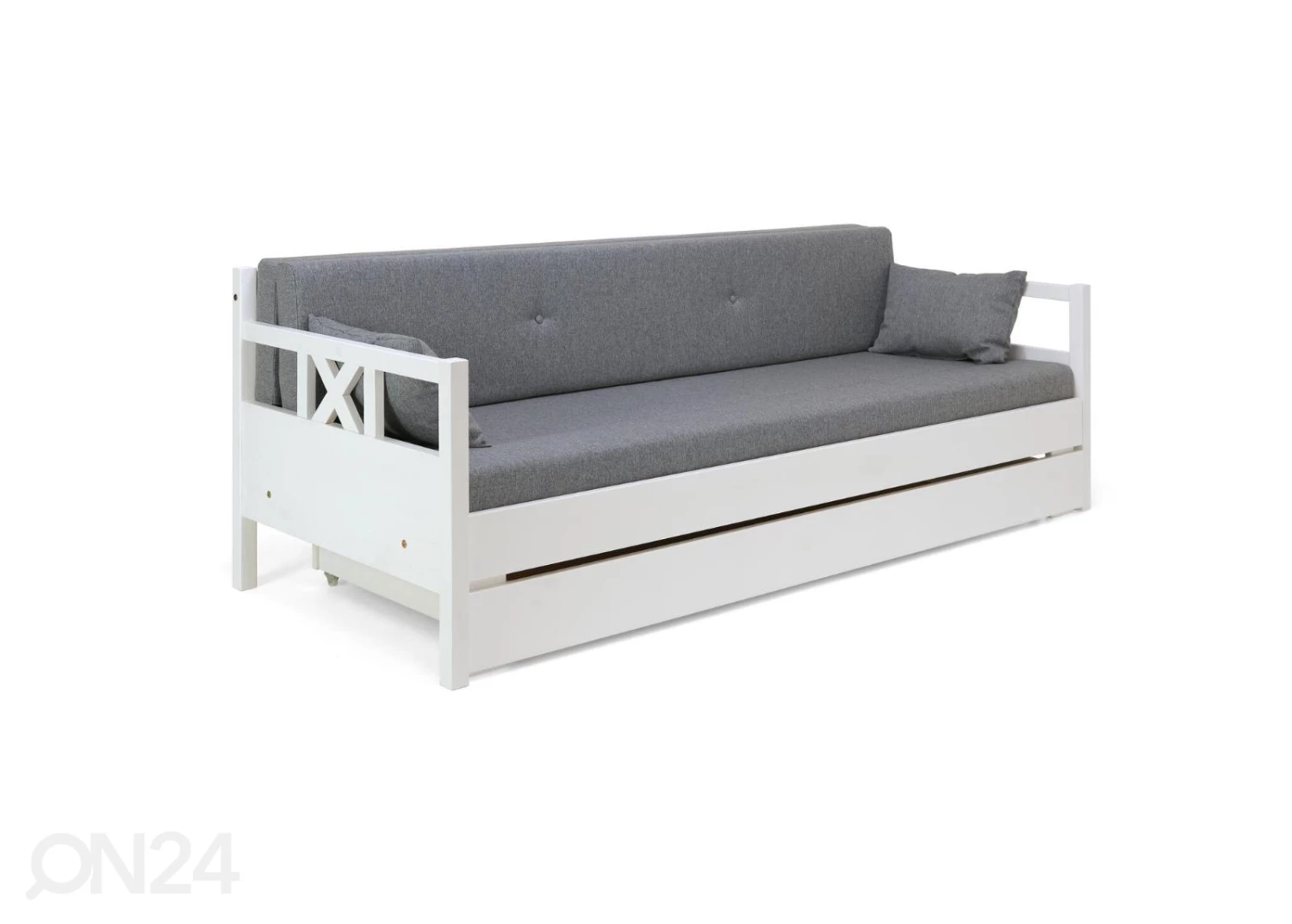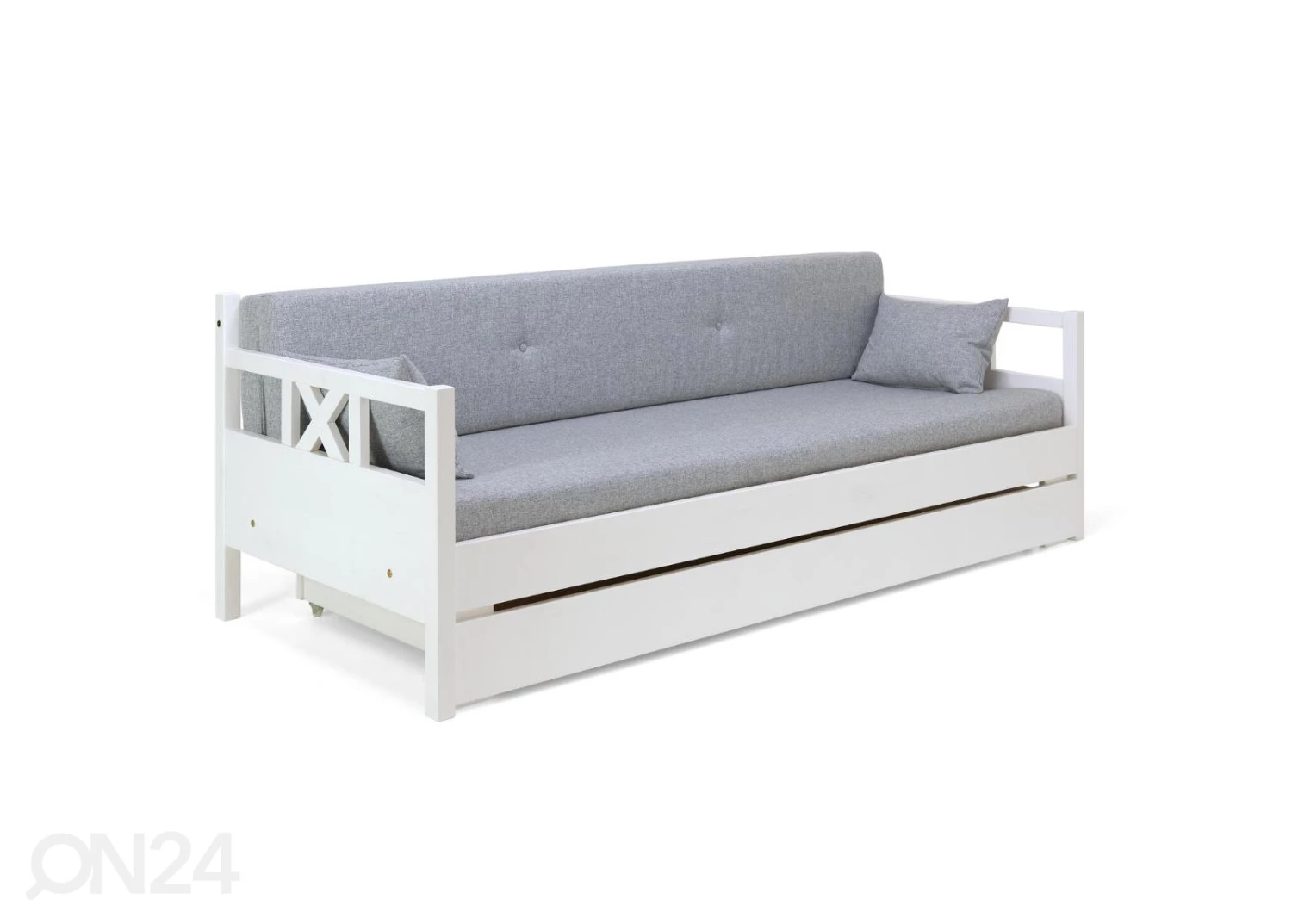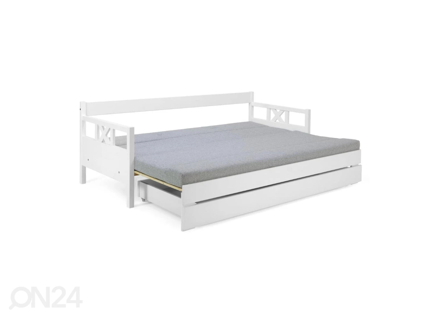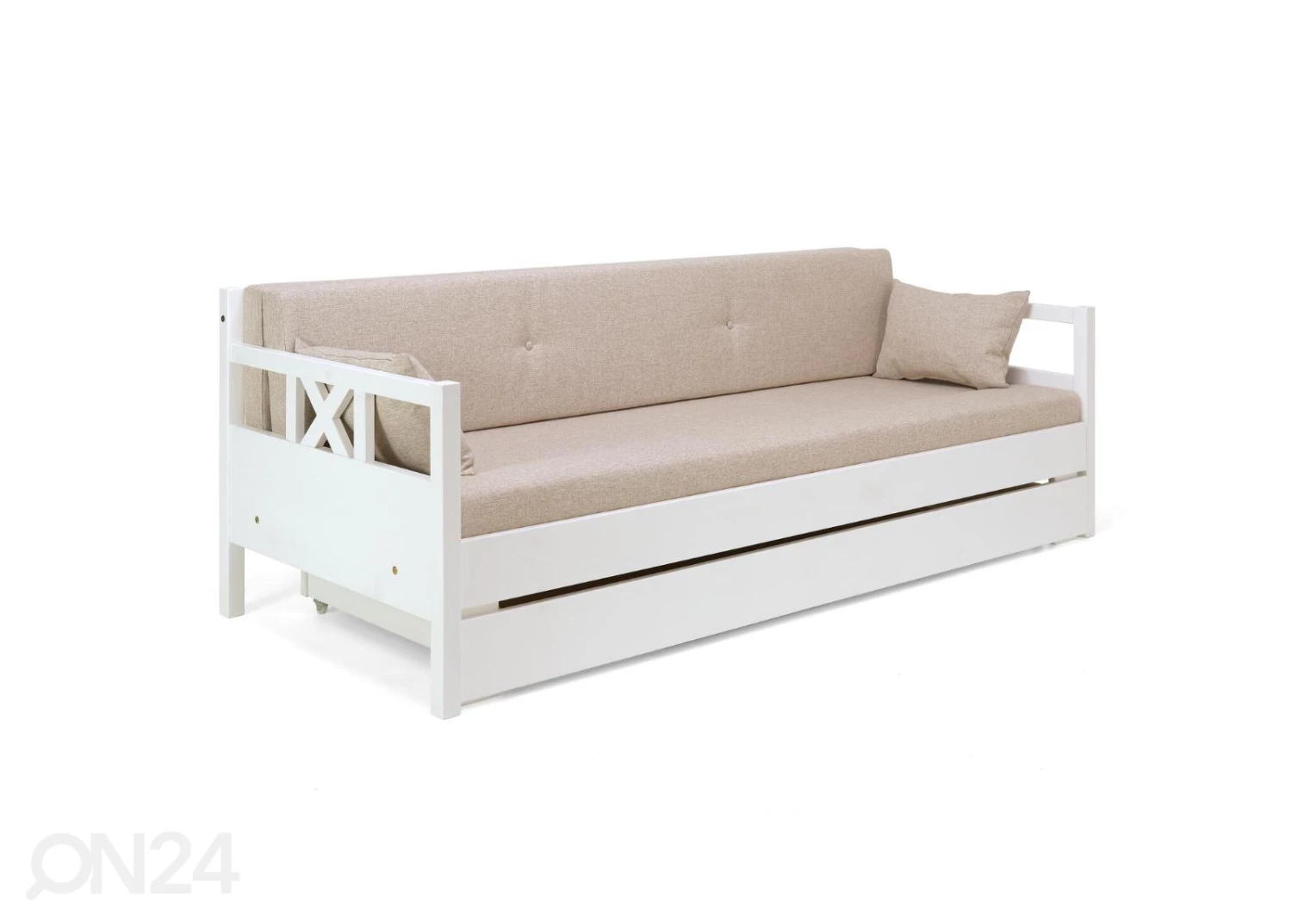 Valmistettu männystä • valkoinen runko • tyynyt on verhoiltu kankaalla • vuodeosan mitat: 140×190 cm • vuodevaatelaatikko sisältyy toimitukseen • patjan paksuus on makuuasennossa 7 cm, istuma-asennossa 14 cm • etureuna 16 cm • kantavuus 200 kgValmistettu männystä•valkoinen runko•tyynyt on verhoiltu kankaalla•vuodeosan mitat: 140×190 cm•vuodevaatelaatikko sisältyy toimitukseen•patjan paksuus on makuuasennossa 7 cm, istuma-asennossa 14 cm•etureuna 16 cm•kantavuus 200 kg